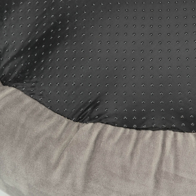 Samt-Optik/PlüschPolyester-BezugPolyestervlies-Füllungmit WendekissenBezüge abnehmbarrutschfester BodenFarbe: taupe/cremeDurchmesser: ca. 50 cm