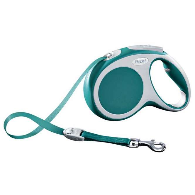 Diese Gurt-Roll-Leine des bekannten Qualitätsherstellers Flexi ist mit dem Kurzhub-Bremssystem, dem Gurtauslaufsystem und einer Gurtwechsel-Verbindung ausgestattet und in vielen modernen Farben erhältlich. Durch den komfortablen Softgriff, der mit einer Griffgrößen-Einstellung ausgestattet ist, liegt sie gut in der Hand und bietet einen sicheren Halt. Diese Größe hat eine Länge von 5 m und eignet sich für Tiere bis zu 25 kg Körpergewicht. Die Leine ist durch diverses Zubehör des Herstellers Flexi erweiterbar. Farbe: Türkis