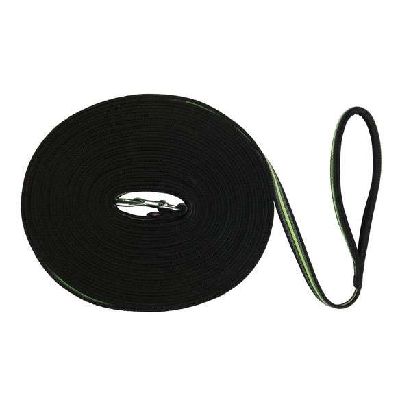 Die neuen Fusion Schleppleinen sind aus hochwertigem Nylongurt gefertigt und zeichnen sich durch ihre besondere Gummierung aus, die eine hohe Belastbarkeit sowie Rutschfestigkeit und Griffigkeit gewährleistet. Die neoprengepolsterte Handschlaufe sorgt für einen besonders angenehmen Halt, was die Leine ideal für die Hundeausbildung macht. Sie eignet sich perfekt zum Antrainieren von Hier-Kommandos und Kommandos auf Distanz. Außerdem kann die Leine als Feldleine bei der Jagd eingesetzt werden oder bietet bei langen Spaziergängen viel Bewegungsfreiheit für Ihren Hund. Mit einer Breite von 17 mm und einer Länge von 5 m ist diese Leine in den Farben Schwarz/Grün erhältlich und somit nicht nur funktional, sondern auch stilvoll. Entdecken Sie die Vorteile dieser hochwertigen und vielseitigen Hunde-Schleppleine!