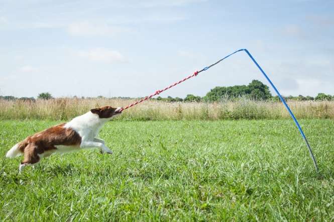 Haben Sie einen energiegeladenen Hund, der dringend Beschäftigung braucht? Der Tether Tug ist die ideale Lösung, um Ihren Hund sowohl physisch als auch mental zu fordern und Langeweile zu vertreiben. Dieses hochwertige Spielzeug besteht aus einer stabilen Metall-Bodenhülse, einer nahezu unzerstörbaren Fiberglasangel mit Gewebeummantelung und einem robusten Zerrseil, das sicher mit einem starken Karabiner verbunden ist. Um den Tether Tug optimal zu nutzen, suchen Sie einen geeigneten Platz im Garten, schlagen die Bodenhülse ein und stecken die Angel ein – schon kann der Spaß beginnen! Bitte beachten Sie, dass die Angel in alle Richtungen gezogen werden kann und beim Loslassen zurückschnellt, daher ist Vorsicht geboten. Der Tether Tug ist speziell für den Außenbereich konzipiert und sollte niemals unbeaufsichtigt verwendet werden. Ideal für Hunde der Größe L (16 bis 27 kg) und in einem ansprechenden hellblau melierten Design erhältlich. Fördern Sie die Gesundheit und das Wohlbefinden Ihres Hundes mit diesem effektiven und unterhaltsamen Spielzeug!