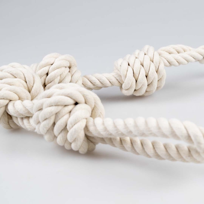 Der duvoplus Baumwollknoten ist das ideale Spielzeug für Hunde, die gerne toben und kauen! Hergestellt aus 100% natürlicher Baumwolle und völlig frei von chemischen Behandlungen, ist dieses Spielzeug sicher und gesund für deinen Vierbeiner. Beim Kauen unterstützt der robuste Knoten zudem die Pflege von Zähnen und Zahnfleisch. Perfekt für herausfordernde Zerrspiele.