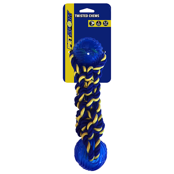 Entdecken Sie die geflochtene Baumwoll-Hantel mit 2 ultra robusten TPR-Gummibällen, das ideale Spielzeug für Ihren Hund! Hergestellt aus hochwertiger, starker ‚1st class‘ Baumwolle, bietet dieses Seilspielzeug nicht nur Langlebigkeit, sondern auch viel Spaß beim Spielen und Kauen. Die auffällige blau-gelbe Farbe sorgt dafür, dass Ihr Hund das Spielzeug auf Rasen besonders gut erkennt. Mit einer praktischen Länge von ca. 35 cm ist dieses Spielzeug perfekt für interaktive Spiele und fördert die Bindung zwischen Ihnen und Ihrem Haustier. Gönnen Sie Ihrem Hund das beste Spielvergnügen mit diesem hochwertigen und günstigen Hundespielzeug!