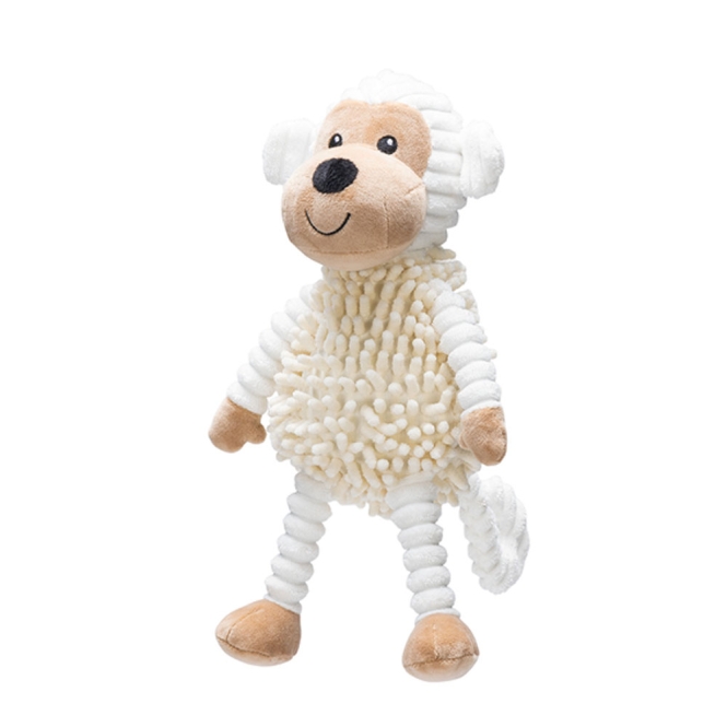 Das Hundespielzeug Affe Jeppe von Beeztees bietet stundenlangen Spiel- und Kuschelspaß für Ihren Hund. Dieses weiche Kuschelspielzeug ist ideal, um es im Hundebett oder Hundekorb zu platzieren, wo sich Ihr Hund gerne daran anschmiegt. Hergestellt aus 100% recyceltem Material, einschließlich der Füllung, ist es eine umweltfreundliche Wahl. Da es keinen Squeaker enthält, eignet es sich perfekt als beruhigender Kuschelgefährte für Ihren Hund!