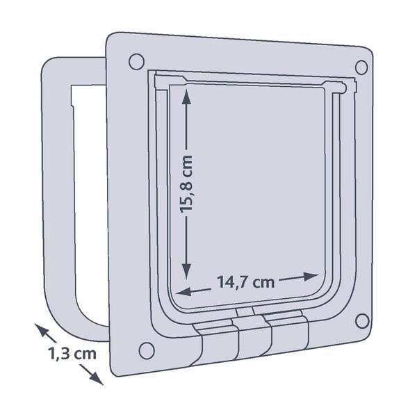 Diese hochwertige Katzenklappe ist die ideale Lösung für Katzenbesitzer, die ihren Haustieren einen bequemen Zugang nach draußen ermöglichen möchten. Mit einem praktischen 4-Wege-System können Sie die Klappe individuell einstellen, sodass Ihre Katze jederzeit hinein- oder herausgehen kann. Hergestellt aus wetterfestem Kunststoff, bietet die transparente Klappe nicht nur einen geräuscharmen Betrieb, sondern auch eine spezielle Dichtung und einen starken Magnetverschluss, die für zusätzliche Sicherheit sorgen. Die Einbautiefe beträgt ca. 13 mm, während die Gesamtmaße etwa 21 × 21 cm betragen. Der Ausschnitt hat die Maße von ca. 16,2 × 17 cm, und die Klappengröße misst ca. 14,7 × 15,8 cm. In elegantem Weiß fügt sich die Katzenklappe harmonisch in jedes Zuhause ein. Gönnen Sie Ihrer Katze die Freiheit, die sie verdient, mit dieser praktischen und robusten Katzenklappe!