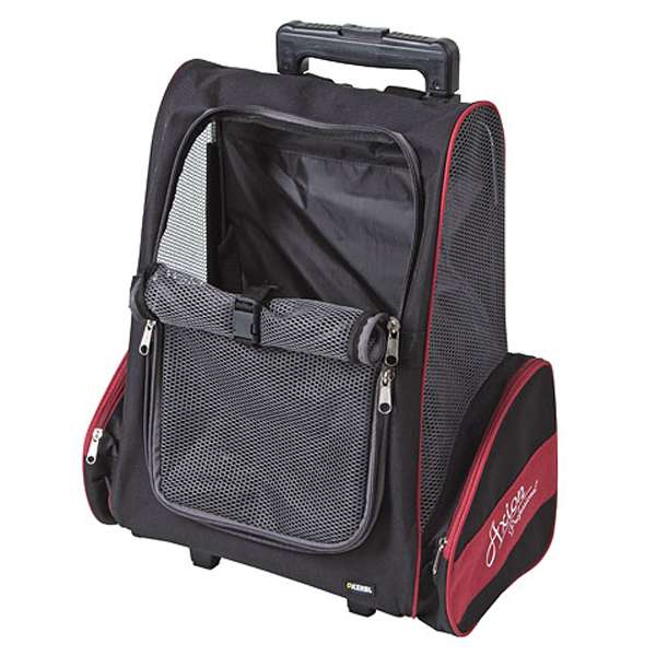 • verstellbarer Teleskoparm (Höhe 80/130 cm) • vorne jeweils halbseitig zu öffnen • auch als Rucksack verwendbar • stufenlos verstellbare und gepolsterte Schultergurte • mittels Laschen auf der Rückseite im Auto anschnallbar • inkl. Taschen für mehr Verstaumöglichkeiten • Netzeinsätze für gute Luftzirkulation • stabil und standfest • aus strapazierfähigem, abwaschbarem Nylonmaterial • mit verstellbarer Kurzleine Farbe: schwarz/rot Maße: 42 x 25 x 55/103cm (L x B x H)