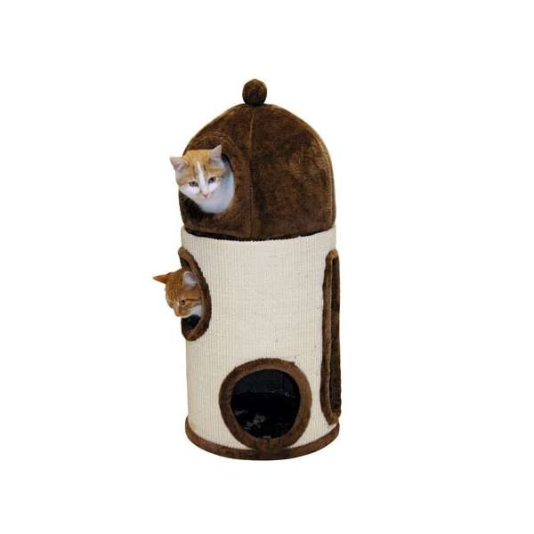 Die Kratz- und Kuschelhöhle Ina ist der ideale Rückzugsort für Ihren Stubentiger oder mehrere Katzen. Mit insgesamt drei getrennten Höhlen, darunter zwei im Inneren der stabilen Kratztonne und einer externen, weichen Höhle aus hochwertigem Plüschstoff, bietet sie vielfältige Möglichkeiten zum Spielen und Entspannen. Der untere Bereich ist komplett mit strapazierfähigem Sisal bezogen, was eine extra große Kratzfläche zum Krallenwetzen bietet – perfekt für die natürlichen Kratzbedürfnisse Ihrer Katze. Ein praktisches Sichtfenster neben den Höhleneingängen ermöglicht es Ihren Samtpfoten, die Umgebung immer im Blick zu behalten. Die Eingänge und das Sichtfenster sind zudem mit einem weichen Plüschrand versehen, der zusätzlichen Komfort bietet. Mit einer Höhe von ca. 80 cm und einem Durchmesser von ca. 35 cm fügt sich die Kuschelhöhle harmonisch in jedes Zuhause ein. Die elegante Farbgebung in Braun und Beige macht die Kratz- und Kuschelhöhle Ina nicht nur funktional, sondern auch zu einem stilvollen Möbelstück für Katzenliebhaber.