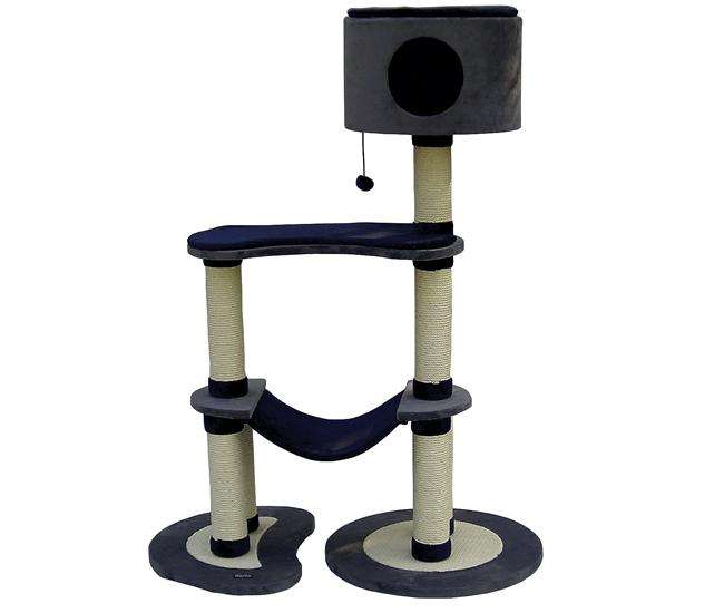 Entdecken Sie die perfekte Schlafplatz- und Kratzbaum-Kombination für Ihre Katze! Dieses trendige Design überzeugt durch eine besonders robuste Verarbeitung aus hochwertigem Sisal und weichem Plüsch. Mit den großzügigen Maßen von 99 x 56 x 138 cm (BxTxH) bietet dieser Kratzbaum ausreichend Platz zum Spielen und Entspannen. Die liegende Fläche misst ca. 68 x 27 cm an der schmalsten Stelle und die Hängematte hat die Maße von ca. 45 x 30 cm. Die gemütliche Höhle hat einen Durchmesser von 43 cm und eine Höhe von 26,5 cm, während der Eingang mit ca. 18 cm Durchmesser den perfekten Rückzugsort für Ihre Katze bietet. Der Stammdurchmesser von ca. 9 cm sorgt für zusätzliche Stabilität. Gönnen Sie Ihrer Katze diesen hochwertigen Kratzbaum und Schlafplatz, der sowohl stilvoll als auch funktional ist!