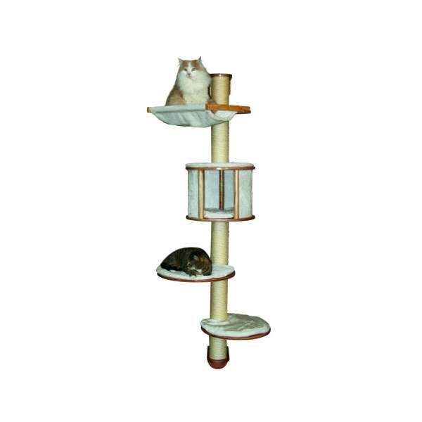 Die Liegeflächen bestehen aus robustem Holz und sind mit abnehmbaren Plüschkissen ausgestattet, die einfach mit Klettverschlüssen befestigt werden. Das hochwertige Sisal ist sicher an den stabilen Säulen verklebt und sorgt für langanhaltenden Kratzspaß.