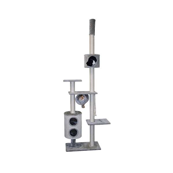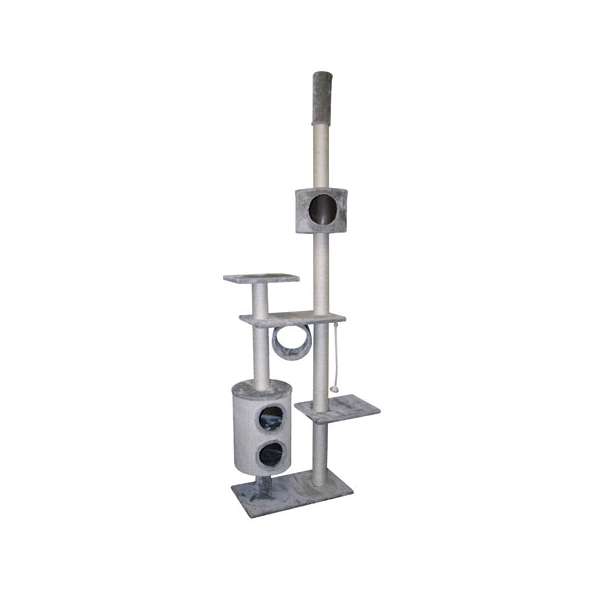 Der Kratzbaum Capella von Kerbl ist das ideale Spielparadies für Ihren geliebten Stubentiger. Mit seinen drei geräumigen Höhlen und einer spannenden Röhre bietet er zahlreiche Versteckmöglichkeiten und sorgt für stundenlangen Spielspaß. Die innovative, zweistöckige Tonne verfügt über eine extra große Kratzfläche, die perfekt für das Krallenwetzen geeignet ist. Ein hochwertiges Sisal-Seil ist am Baum befestigt und bereitet Ihrem kleinen Freund zusätzlich Freude beim Spielen. Dank des praktischen Deckenspanners, der mit kuscheligem Plüsch bezogen ist, lässt sich der Kratzbaum mühelos in Räumen mit einer Deckenhöhe von 230 bis 248 cm aufstellen. Die drei Liegeflächen bieten Ihrem Stubentiger einen komfortablen Rückzugsort und sind ebenfalls mit weichem Plüsch ausgestattet. Dieser Kratzbaum vereint Funktionalität und Komfort und ist die beste Wahl für Katzenliebhaber, die ihren Tieren eine hohe Lebensqualität bieten möchten.