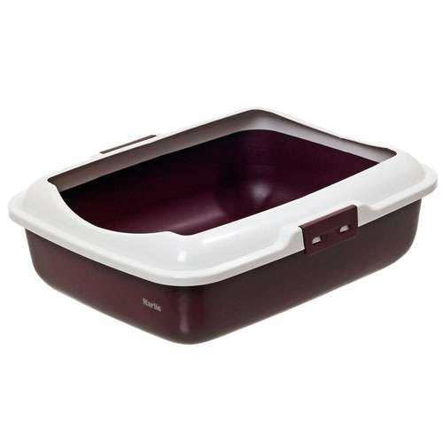 Praktische Katzentoilette mit abnehmbarem Rand, der mit zwei Clips seitlich befestigt wird. Der Rand ist vorne abgerundet und bietet der Katze somit einen besonders einfachen Einstieg. Außenmaße: 50 x 40 x 16 cm (LxBxH) Farbe: Dunkelrot