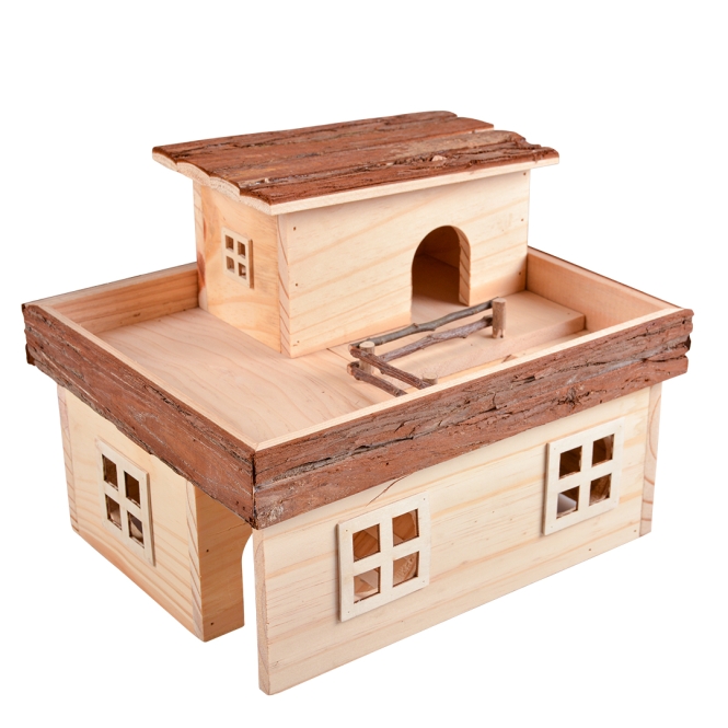 Dieses lustige Gutshaus von duvoplus besteht aus 100% natürlichem Holz und ergänzt den Käfig Ihres Nagetiers. Es bietet Ihrem Haustier einen sicheren Ort zum Ausruhen, Spielen und Nagen. Ein Holzspielzeug regt den natürlichen Nageinstinkt an und hält die Zähne gesund. Durch intensives Nagen halten Nagetiere das Wachstum ihrer Zähne unter Kontrolle.