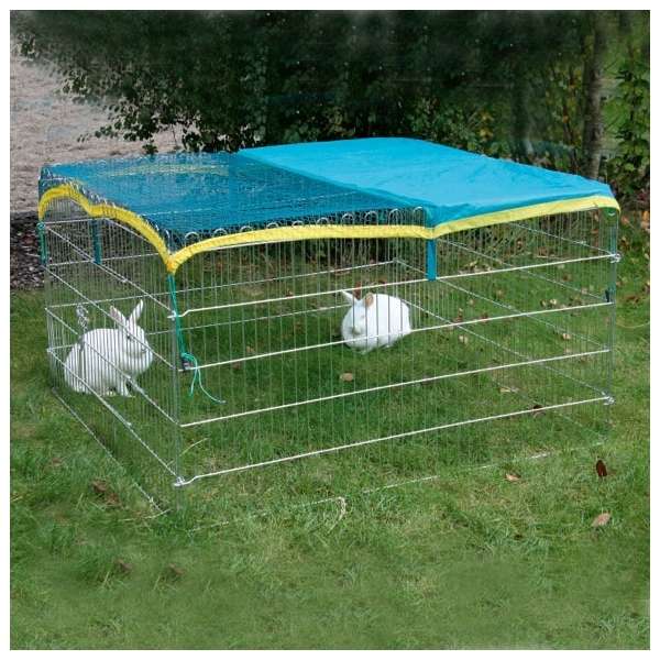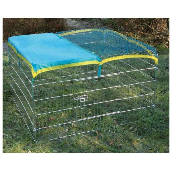 In diesem Auslaufgehege haben Ihre Nager genügend Platz, um nach Herzenslust zu laufen, springen, toben, Haken schlagen, verstecken spielen und schlafen. Für Nager und auch Hundewelpen geeignet. Bestehend aus 4 Zaunelementen mit Bodennägeln zur Erdverankerung und Abdecknetz mit integriertem Sonnenschutz zur Verwendung im Freien. – verzinkte Ausführung – inkl. Tür – Abdecknetz mit integriertem Sonnenschutz – einfache Montage mit Erdspießen – Größe der Elemente: jeweils ca. 116 x 65 cm (BxH)