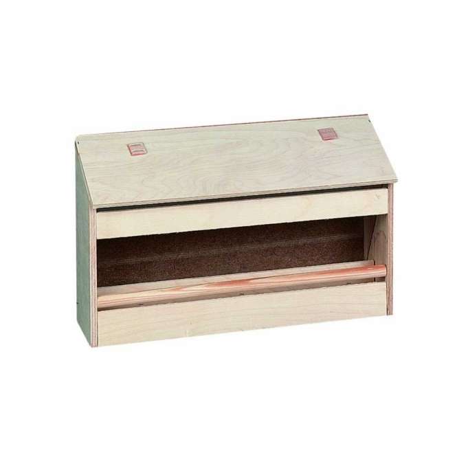 Diese Futterkrippe ist aus Holz gefertigt und verfügt über eine integrierte Sitzstange. Das Dach verhindert, dass das Futter im Regen nass wird. Die Krippe eignet sich für kleine Vogelarten, die in einer Voliere oder einem großen Käfig gehalten werden und ermöglicht ein gemeinsames Fressen mehrerer Vögel. Breite: ca. 36 cm